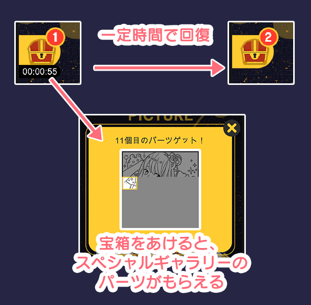 宝箱を開けると、スペシャルギャラリーのパーツがもらえます。